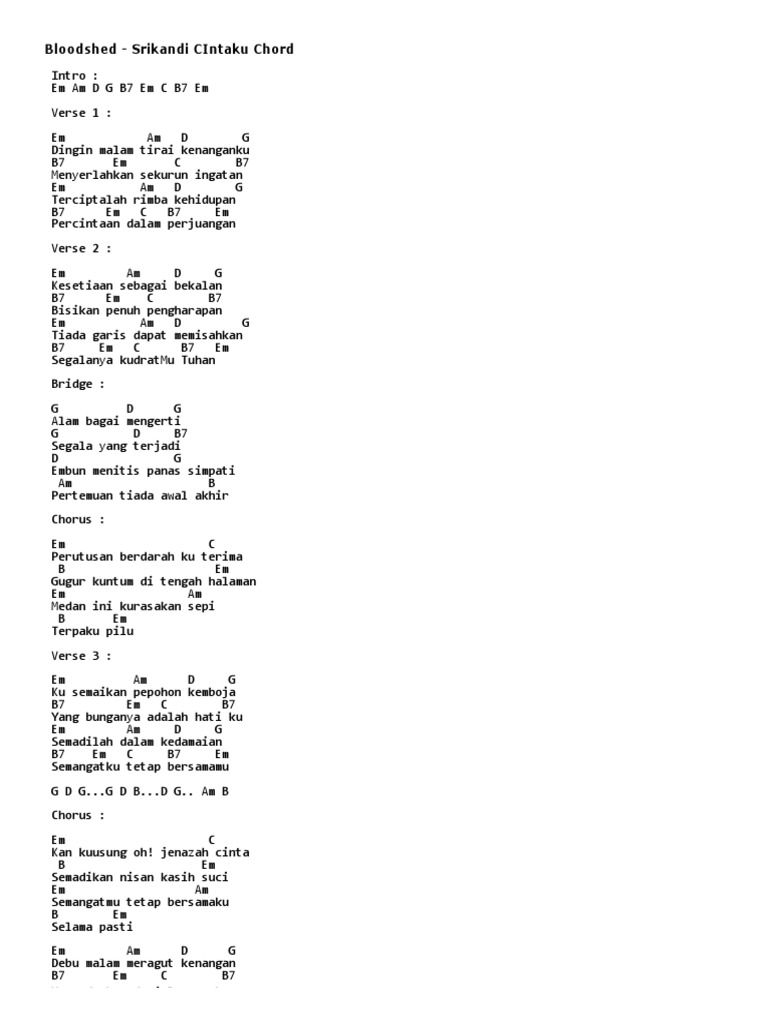 Malay Gitar Kord Bloodshed Srikandi Cintaku Chord Pdf
